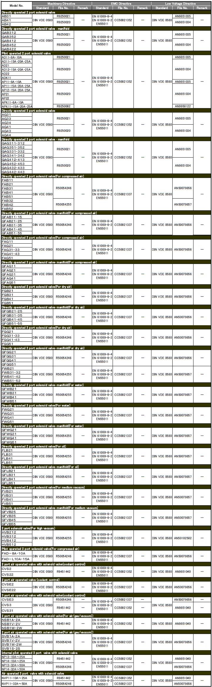 - Lista de productos de CKD conformes a las normas de la Unión Europea (Válvula de control de fluido)