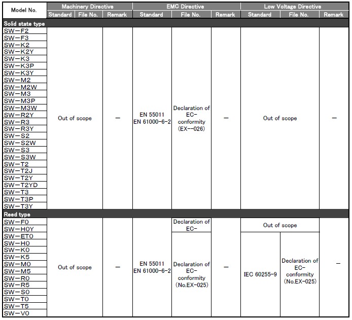 - Lista de productos de CKD conformes a la Unión Europea (Interruptor de cilindro)